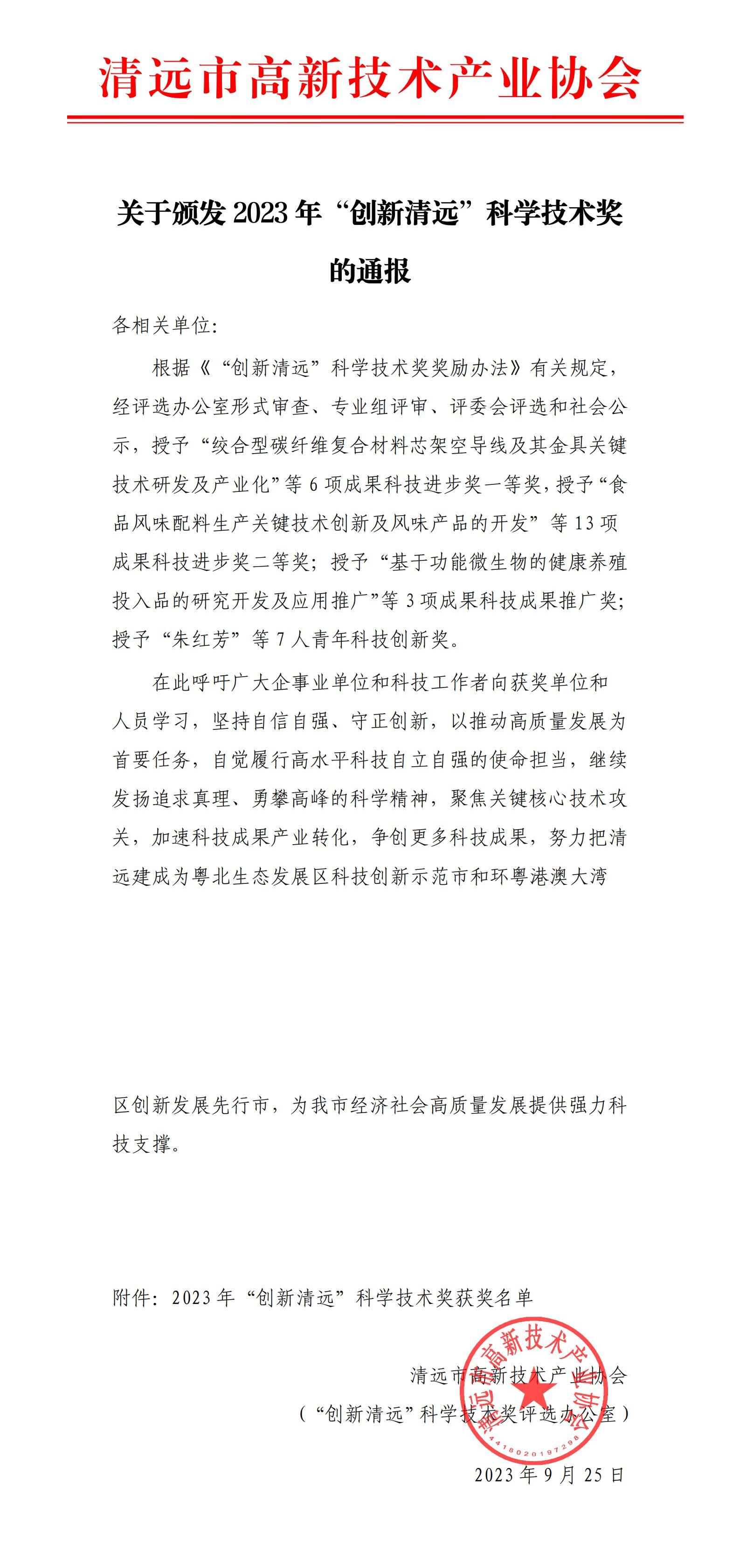 關于頒發2023年“創新清遠”科學技術獎的通報_.pdf